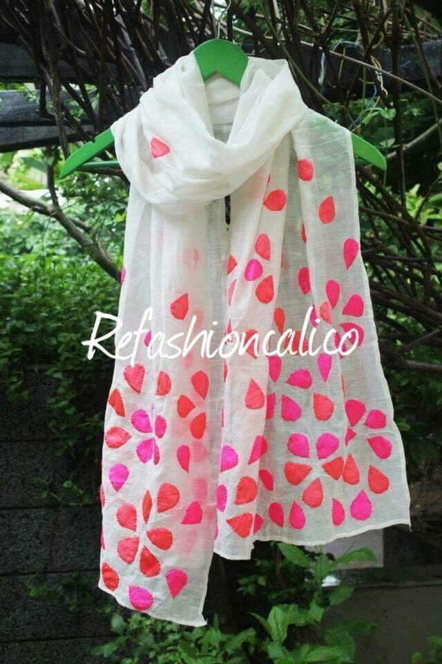 A white scarf with full of colours…..It is aplick work it is most famous in sindh and like in all over world… Aplick work means embroidry of cloth at cloth….
